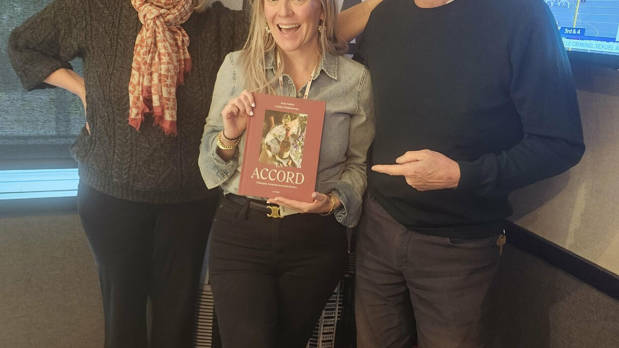Then, we’ll shift from lights to literature — and welcome two of Quebec’s most beloved food and wine voices, Jean Aubry and Lesley Chesterman, who’ve just released their brand new book En Accord. It’s a thoughtful, delicious collaboration between two culinary icons, all about the magic that happens when food and wine truly meet in harmony.