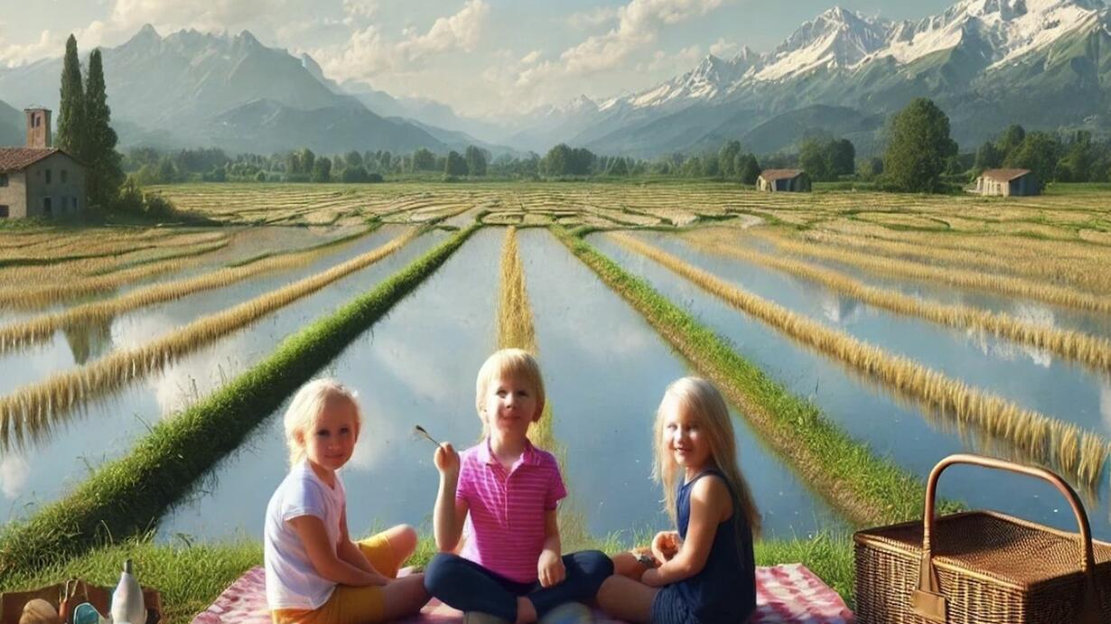 In Italia la zona della coltivazione del riso è un triangolo tra le città di Pavia, Novara e Vercelli, dove si possono vedere molte risaie, cioè campi coltivati a riso. Voi sapete però che il riso è un cereale che viene dall’Asia, ma già gli Assiri e i Babilonesi coltivavano il riso che però non mangiavano, ma usavano come mangime per gli animali: il mangime è il cibo degli animali appunto.