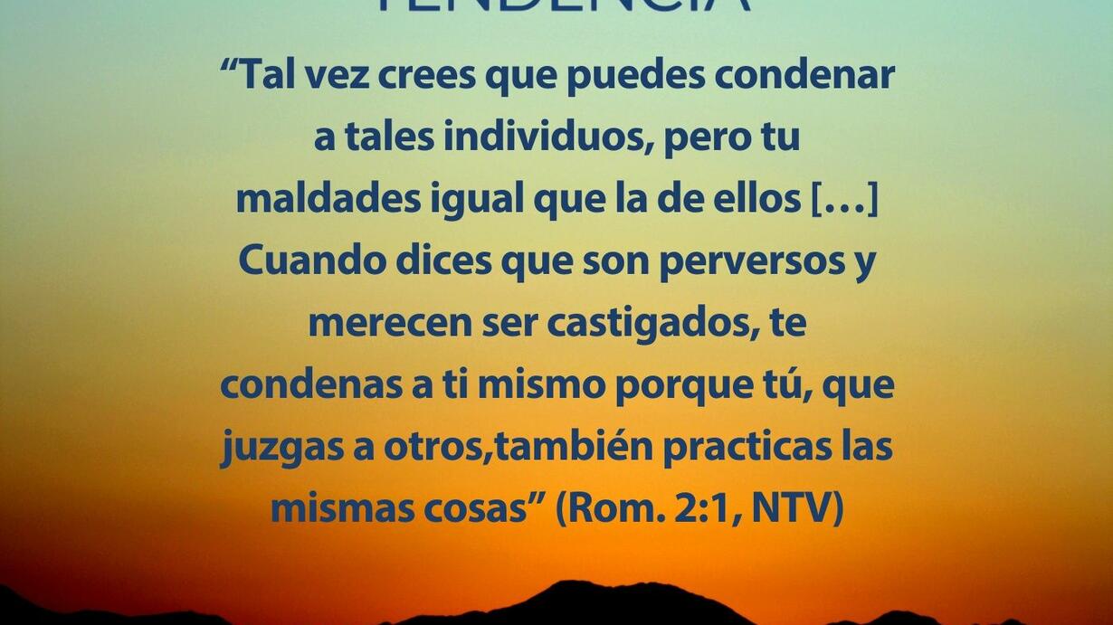 “Tal vez crees que puedes condenar a tales individuos, pero tu maldades igual que la de ellos […] Cuando dices que son perversos y merecen ser castigados, te condenas a ti mismo porque tú, que juzgas a otros,también practicas las mismas cosas” (Rom. 2:1, NTV)