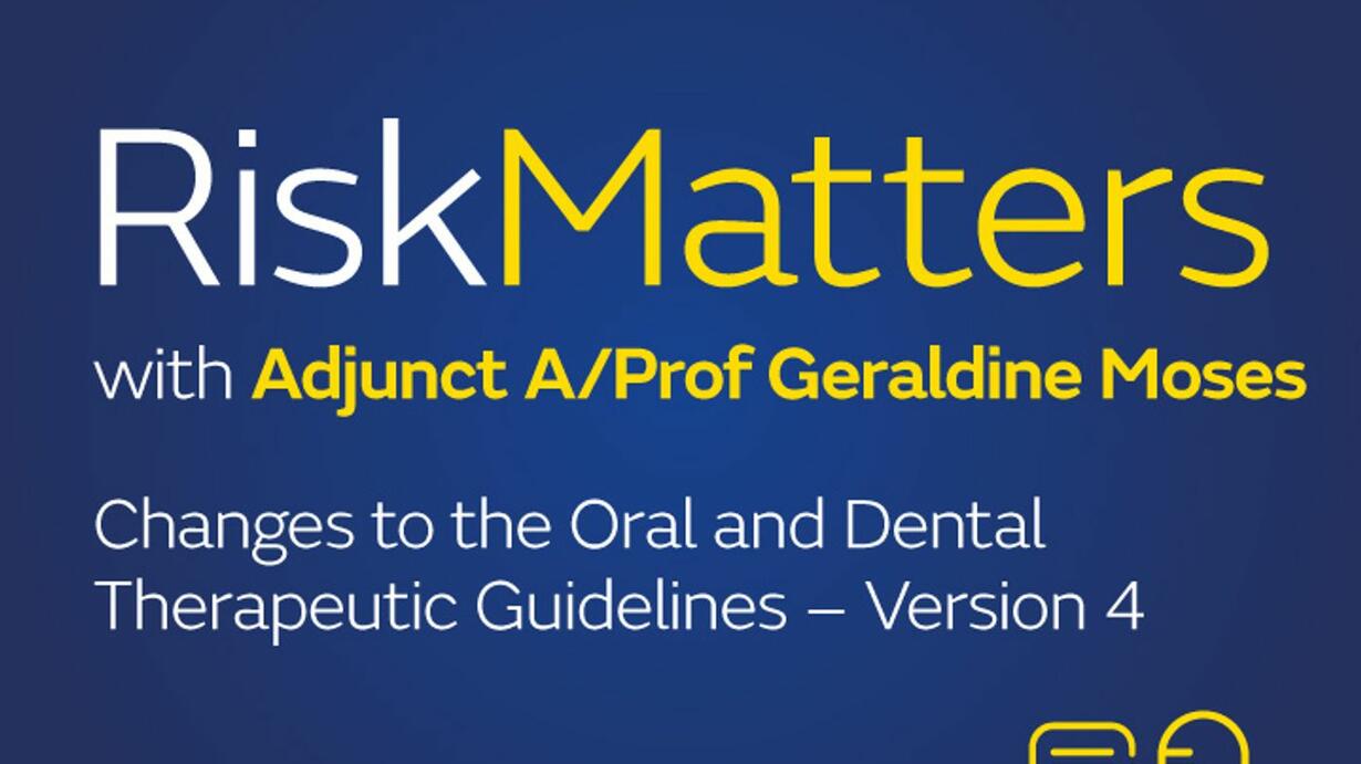 In this episode of RiskMatters, senior dentolegal consultant at Dental Protection Dr Annalene Weston speaks with Adjunct Associate Professor Geraldine Moses about the recently updated – Therapeutic Guidelines - Oral and Dental version 4, released in September 2025.