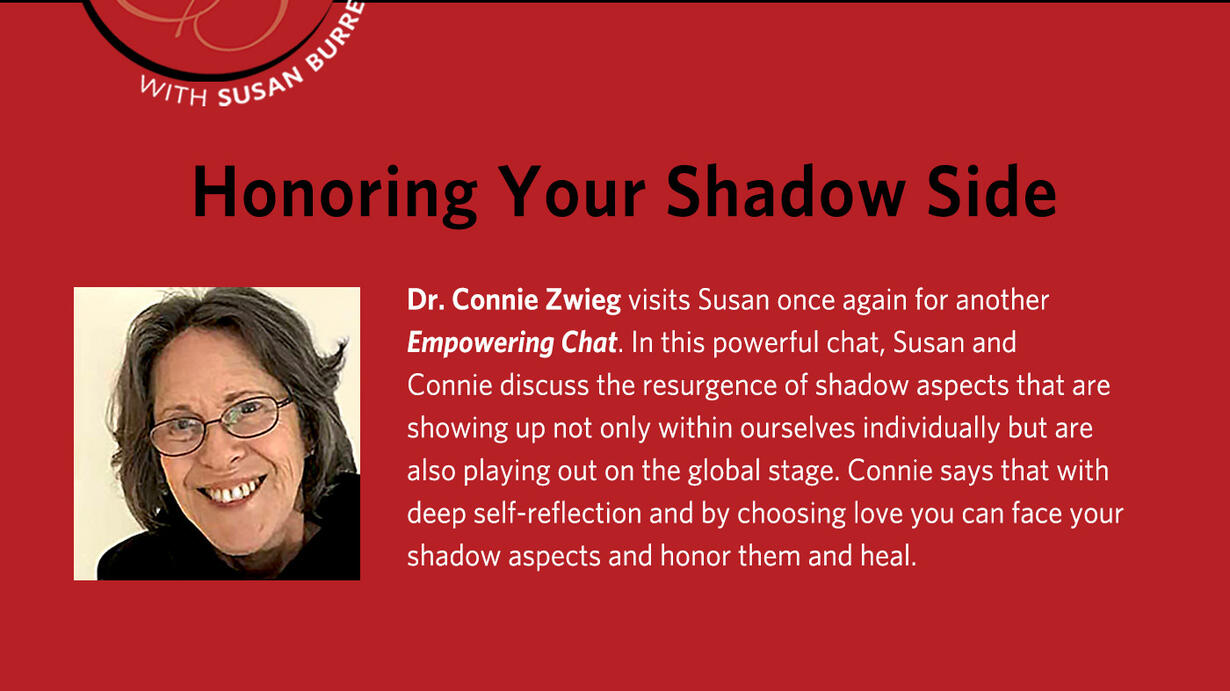 Dr. Connie Zweig, Jungian Therapist and author is once again gracing the airwaves here on Empowering Chats with Susan Burrell. I am so honored to once again be in conversation with Connie. This time to discuss shadow work.