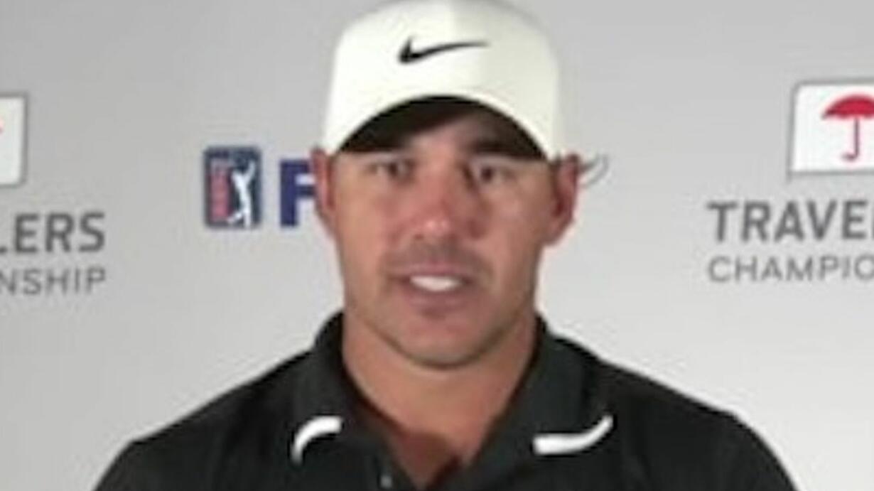 Brooks Koepka chats with the media prior to the Travelers Championship.
