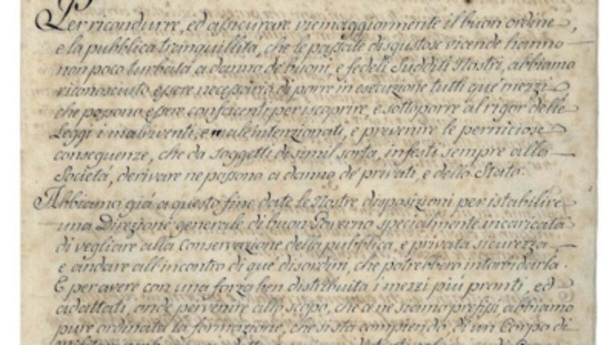 Con la caduta di Napoleone Bonaparte, si avviò il processo della Restaurazione. Vittorio Emanuele I di Savoia rientrò così in possesso degli "Stati di Terraferma" dopo aver vissuto esiliato in Sardegna. Tra le poche novità introdotte vi fu proprio la creazione del corpo dei Carabinieri Reali, argomento di questo episodio