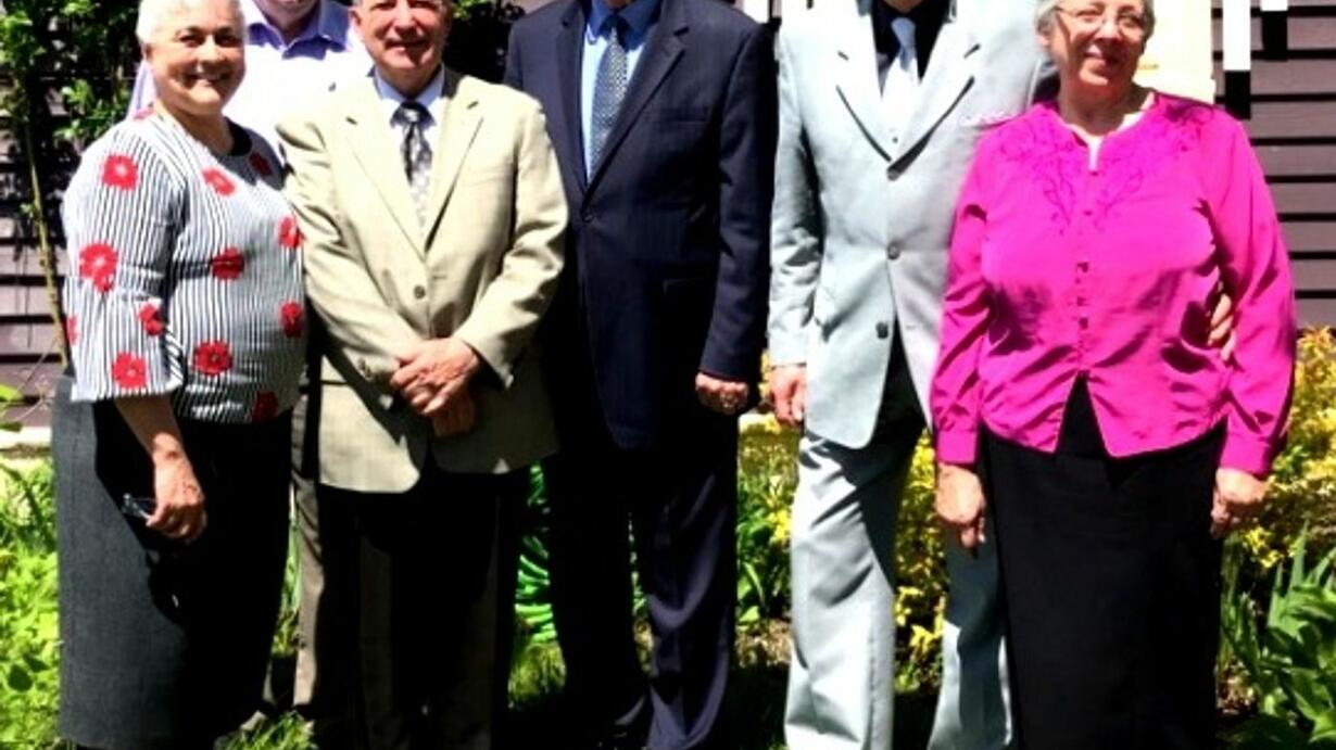 Mayor Wendy Robinson speaks with members about the past. present and future of the Pentecostal Church in Stewiacke.