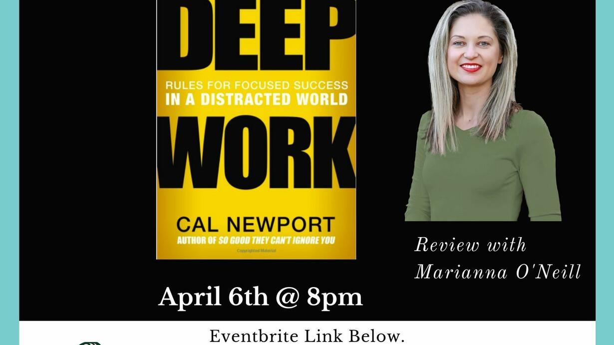 The latest Tuesday Night Book Club Review is Deep Work, written by Cal Newport, reviewed by Marianna O'Neill.