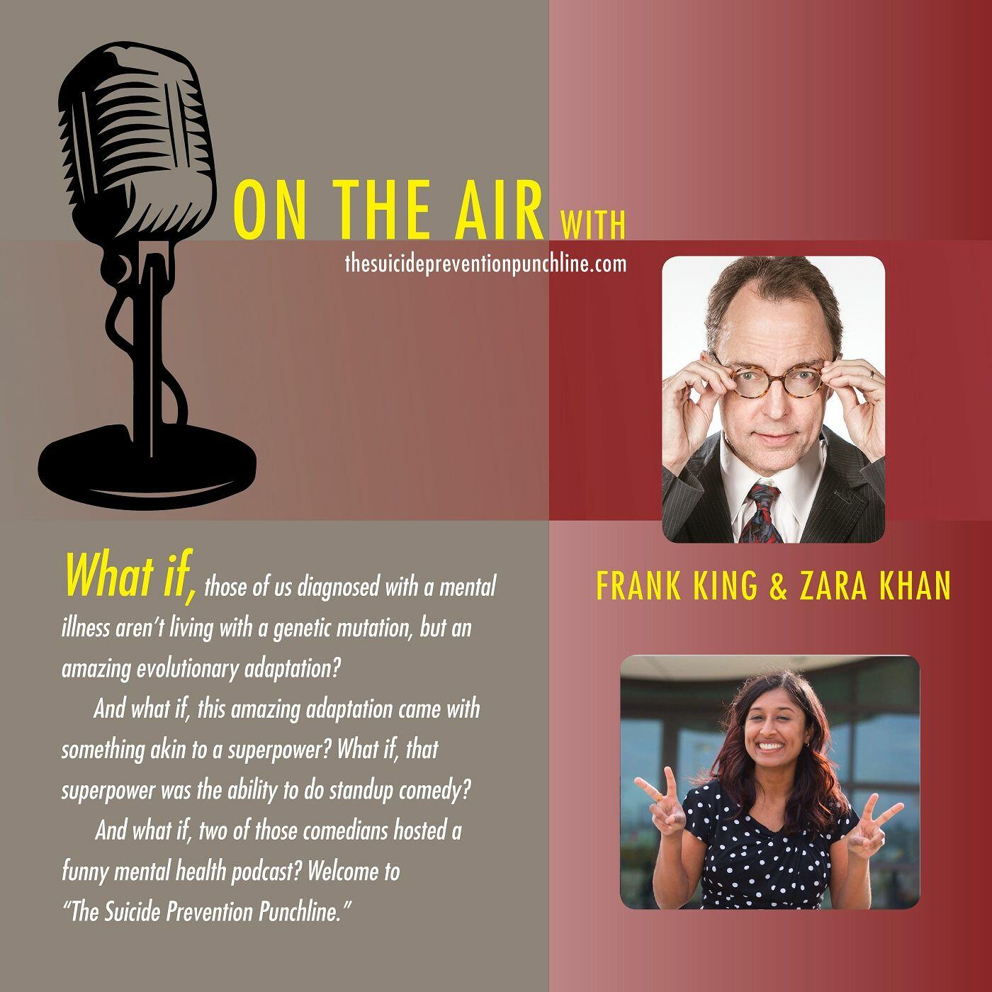 What if, those of us diagnosed with a mental illness aren’t living with a genetic mutation, but an amazing evolutionary adaptation? And what if, this amazing adaptation came with something akin to a superpower? What if, that superpower was the ability to do standup comedy? And what if, two of those comedians hosted a funny mental health podcast? Welcome to “The Suicide Prevention Punchline.”