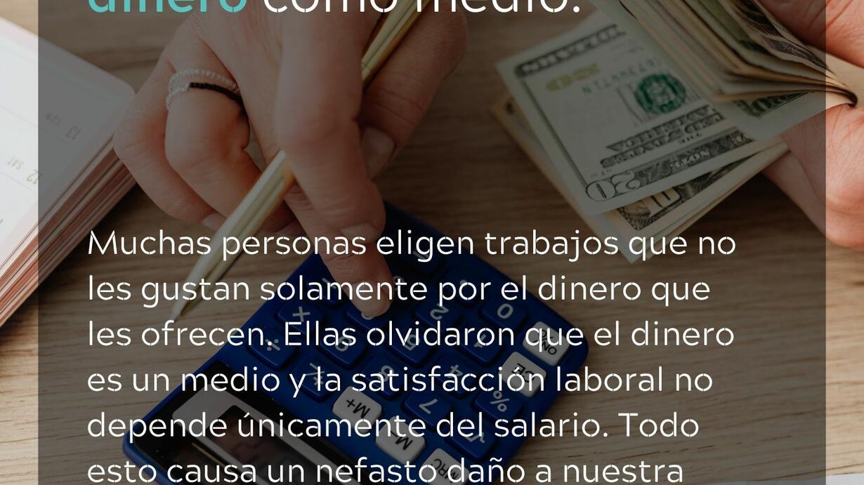 Muchas personas eligen trabajos que no les gustan solamente por el dinero que les ofrecen. Al cabo de un tiempo ven -o ignoran- que llevan unas carreras poco gratificantes, en empresas en donde no se sienten reconocidas. Ellas olvidaron que el dinero es un medio y la satisfacción laboral no depende únicamente del sueldo. Esta situación puede afectar nuestra percepción de la felicidad, nuestro balance entre vida laboral y personal, lo que al final le resta importancia a nuestros valores y deseos. Todo esto causa un nefasto daño a nuestra carrera. ¿Cómo evitarlo?