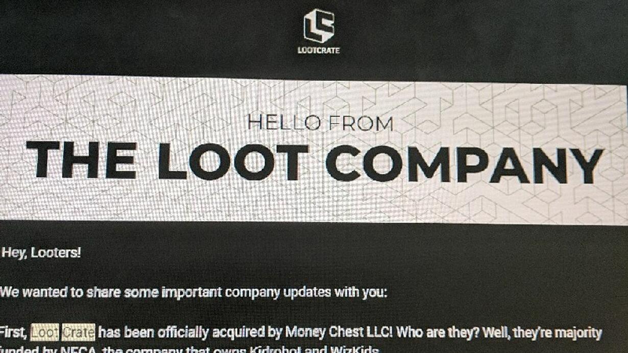 First, loot crate has been officially acquired by money chest LLC! Who are they? Well, their majority funded by NECA, the company that owns kidrobot and wizkids.